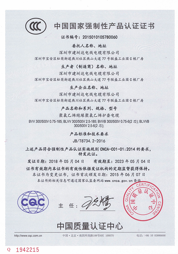 建圳達(dá)電纜立足于中國(guó)深圳,擁有技術(shù)精湛的隊(duì)伍、現(xiàn)代化生產(chǎn)設(shè)備、精密的檢測(cè)儀器,從原材料、生產(chǎn)、成品嚴(yán)格按照國(guó)家標(biāo)準(zhǔn)檢測(cè),通過(guò)多個(gè)認(rèn)證。